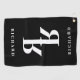 Classy double name initials monogram template Golf Towel. Personalized sports gift for him or her. Monogrammed golfing gifts for men and women. Elegant typography template with back to back name initials. Glamorous Father's Day and Birthday gift ideas for legendary golfer, husband, dad, father, best friend, co worker, boss, colleague, coach, instructor, trainer, teacher, grandpa, retired person, golf lover etc. Add your own surname or first name. Including hook to hang it up. Unique golf accessories for friends and family. Black and white or custom color.