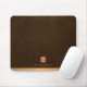 Luxury exclusive looking office or personal monogrammed mouse pad featuring a faux copper metallic gold glitter square with your monogram name initials and a sparkling stripe over a stylish dark brown faux leather background. ++++++++++++++ Suitable for small business, corporate or independent business professionals, personal branding or stylists specialists, makeup artists or beauty salons, boutique or store managers. +++++++++++++++ Please note that the leather texture and glitter sparkle effects are PRINTED.