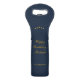 The wine tote is great for all of the social events and gatherings at neighbors in our community. The material is very durable and easy to carry a chilled bottle of wine or a few stacked aluminum cans. Be sure to push the bottle or cans firmly to the bottom so the carrier isn't tippy when set on a table. The blue background is a lovely rich blue with a sharp white logo - the printing looks great! I didn't realize the blue background wouldn't go edge to edge (there is a white "seam area" on each side) but our logo colors are blue and white so it looks like trim.