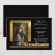 Classy Elegant Gold Text Graduate 1 Photo Black Announcement