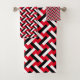 Classy and Elegant Bath Towel Set with red, black and white art deco pattern,