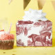 Red toile pattern with horses and trees for rustic country decor in English, FRench or American style. The horse is a majestic animal that embodies the spiritual power of independence, freedom, nobleness, endurance, confidence, triumph, heroism and competition. Its symbol is associated with strength, courage and freedom.