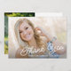 This 2 photo graduation thank you card features a full bleed horizontal photo on the front accented with a classy handwriting text overlay. The backside offers a second vertical photo and custom text for your personal thank you message.
