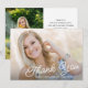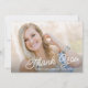 This 2 photo graduation thank you card features a full bleed horizontal photo on the front accented with a classy handwriting text overlay. The backside offers a second vertical photo and custom text for your personal thank you message.