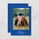 Classy Elegant Script Royal Blue Graduation Photo Thank You Card