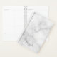 This planner features personalized name in grey modern script font style and year in modern sans serif font on white marble background.
