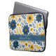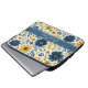 This beautifully designed laptop sleeve case, inspired by Mediterranean Italian style, features a vibrant floral and leaf pattern in shades of yellow, white, light and dark blue. There is ample space for customization, allowing you to add your name, monogram, or initials. This design is a must-have for anyone looking to express their unique style.
