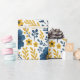 This beautifully arranged classic Mediterranean botanical flower design features a vibrant pattern of bright yellow and dark blue flowers and leaves on a crisp white background. It is perfect for wrapping gifts for fun birthdays or any special occasion—just because! The design is ornate, stylish, and eclectic, making it appealing to artistic crafters and enthusiasts of vintage retro styles. It is available on a variety of modern craft and office products, including wrapping paper, tissue paper, gift tags, bags, favor boxes, ribbons, and envelopes.