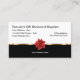 Executive gift services business cards in a classy design created with a gold colored design element and a gift bow in the background.