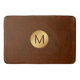Classy Faux Brown Texture & Gold Initial Name Bath Mat