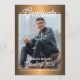 Unique and trendy congratulations graduate announcement and celebration party invitation card, with a classic faux shiny brass copper gold gradient colored background. With room to customize or personalize with a photo, the name of the graduate, class graduation year, high school, future college or university name, and celebration party event information. Let the family, friends and neighbors know there is a happy graduate ready to conquer the world, and invite everybody to come celebrate the happy event with you!