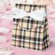 Stylish gift favor boxes for your party guests, featuring a classic contemporary bright red, beige brown, black and white popular English tartan plaid pattern. The pattern is available on a variety of modern office products. Such as address labels, wrapping and tissue paper, gift tags, bags and favor boxes, stickers, ribbons, notebooks, binders, stationery and envelopes.