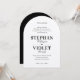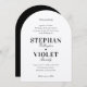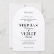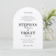 Plain white envelopes are included with paper invitations and will come to fit the invitation size you select. If you don’t need the envelopes, you may choose to not receive them by selecting the dropdown below "Envelopes" and choosing "None." If you’d like to have a design on your envelopes, you can browse all of these available envelopes to find the design that complements your Classy Formal Arch Shaped Wedding Invitation.