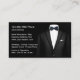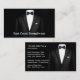 Classy business cards for a Formalwear or Tuxedo Rental service designed with a men's suit on the front and back in this double side design already organized so you just replace our text with yours.