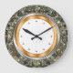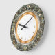 Classy and glitzy wall decor clock designed with simulated jeweled background pattern digitally printed to mimic the look of sparkling jewels and includes gold colored clock face markings for a touch of class.