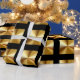 Classy gift wrap paper in a cool gold and black design that includes gold metallic looking squares pattern that contrasts nicely with the black background. Use as an upscale wrapping paper design for that special birthday or occasion so you can wrap your gifts in style.