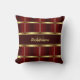 Add this feminine and elegant throw pillow to your home decor collection now. It's elegant with a checkered gold and burgundy pattern and a customizable script name and initial.
