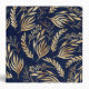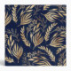 Elegant and simple gold leaves, houseplant foliage hand-drawn navy-blue illustration, filled with a beautiful fall greenery pattern, faux gold foil leaves vegetation, on a dark blue color, navy-blue background. Botanical floral nature hand painting, contemporary plant design.