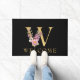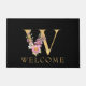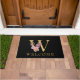 Classy Gold Monogram W with Pink Florals Doormat