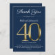 Classy Gold Navy Blue 40th Birthday Thank You Card