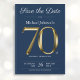 Classy Gold Navy Blue 70th Birthday Party Save The Date
