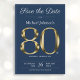 Classy Gold Navy Blue 80th Birthday Party Save The Date