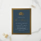 Classy wedding invitations featuring faux gold foil rings and double border against a navy blue background. Your party details are displayed in a chic serif typography with the occasion in a stylish script typeface. Perfect for those looking for a timeless and elegant design.