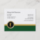 Luxury golf theme business cards that includes a template design with an upscale look including golf action player symbol and emblem, text layout you can customize and powerful template designed for a golf instructor, training class, or golf industry business.