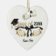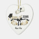 Class of for any year design featuring black ribbon and flower accents for the Classy Graduate. Design has gold and black text and white flowers with Mortar and diploma. Customize Name and year area.