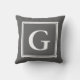 Classy gray monogram throw pillow for bed or couch