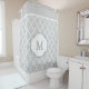 Classy Gray White Moroccan Tile Pattern Monogram Shower Curtain