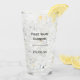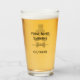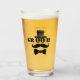Groom glass with top hat and mustache motif and stencil lettering. Great for stag nights and wedding receptions. Personalised with name and date on back.