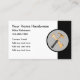 Classy handyman business cards designed with a golden hammer and wrench tool emblem and classic visiting card layout in an editable online template created as a promotional calling card for anyone who does home maintenance and repairs.