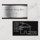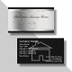 Classy home builder real estate business cards you can customize with classy design that includes a simulated silver metallic like background, house symbol, and text layout you can customize. Best business cards for themes related to real estate, home building or building contractor.