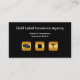 Classy business card template for a multi line insurance agent or agency with home, auto, and health insurance gold tone graphic emblems designed for an insurance broker. Presented on high quality UV coated card stock as an online template.