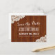 Classy Lace Corner Wood Background Save the Date Announcement Postcard