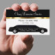Classy limo driver business card template with image of a limousine, gold colored design element that adds a touch of class, and elegant company name title style that adds an upscale look when you present your business cards to clients. Designed as a limousine service, chauffeur, car service, or classy taxi.