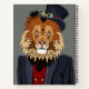 This design features portrait of a lion in a man's business suit and hat.