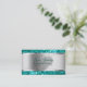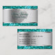 Glitzy makeup artist business card template in beautiful simulated turquoise colored digital glitter printed on the front and back with great text layout you can customize and easy template style design you can alter to your liking. Best business cards for a makeup artist, beauty consultant, or cosmetics rep.