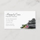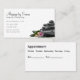 Classy massage therapy appointment business cards designed with hot stone and floral graphics and elegant yet trendy appointment reminder style.