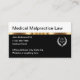 Classy malpractice law Attorney business cards in an upscale yet simple custom design available in bulk and on budget. Created with gold tone design elements that add an upscale look of professionalism for you and your staff.