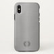 Executive men elegant modern upscale faux silver metallic sparkle iPhone case with a monogrammed metallic brushed steel dark gray circle. +++++++++++++ Easy to personalize with your monogram / name initial. ++++++++++ Please note that the brushed sparkle steel metallic effects are PRINTED.