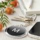 Masculine men's monogram keychains with simulated brushed aluminum metal looking background printed on the surface. Includes metallic looking monogram emblem you can personalize with any guys initials in a modern design on a high quality acrylic material that let's you carry your house keys or car keys in style. Designed for men, boys, or business professionals.