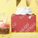 This respectable and luxurious Christmas wrapping paper design features the message "MERRY CHRISTMAS!" in white colored text on a red colored background. Wrapping paper like this might be used to wrap presents being given in celebration of Christmas.