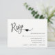 Elegant and unique wedding RSVP cards with little heart. White background (can be changed to any color) and black script calligraphy RSVP. Initials of bride and groom in back of card. Place to add MENU choice. Editable templates so you can add your own text. Perfect for any wedding theme or time of year. Add these reply cards to your invitations. See collection.
