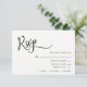 Elegant and unique wedding RSVP cards. White background (can be changed to any color) and black script calligraphy RSVP. Initials of bride and groom in back of card. Place to add MENU choice. Editable templates so you can add your own text. Perfect for any wedding theme or time of year. Add these reply cards to your invitations. See collection.