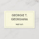 This modern, classy, and simple business card design features a light tan background, and a single-line border. It could be used by a professional such as a nail tech, manicurist, pedicurist or nail artist. The name, profession and contact details can be personalized.