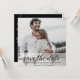 A simple, elegant, classy way to announce your engagement and have guests "Save the Date" for your wedding. Personalize this square flat card with the bride and groom's names, wedding date and location. A field for the website can be customized on the back. Replace the photo with your own picture from the engagement shoot. Elegant and modern script with long-tail embellishments makes this card both chic and stylish.