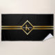 Classy Monogram Faux Gold with White Text on BLACK Beach Towel