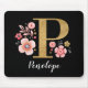 A beautiful, feminine monogrammed pink floral mouse pad, featuring pink flowers and a faux gold monogram letter P on a black background. Personalize the mouse pad by adding your name underneath the monogram. Makes a fun gift for a friend or for a bridesmaid gift. Designed for you by Blackberry Boulevard.